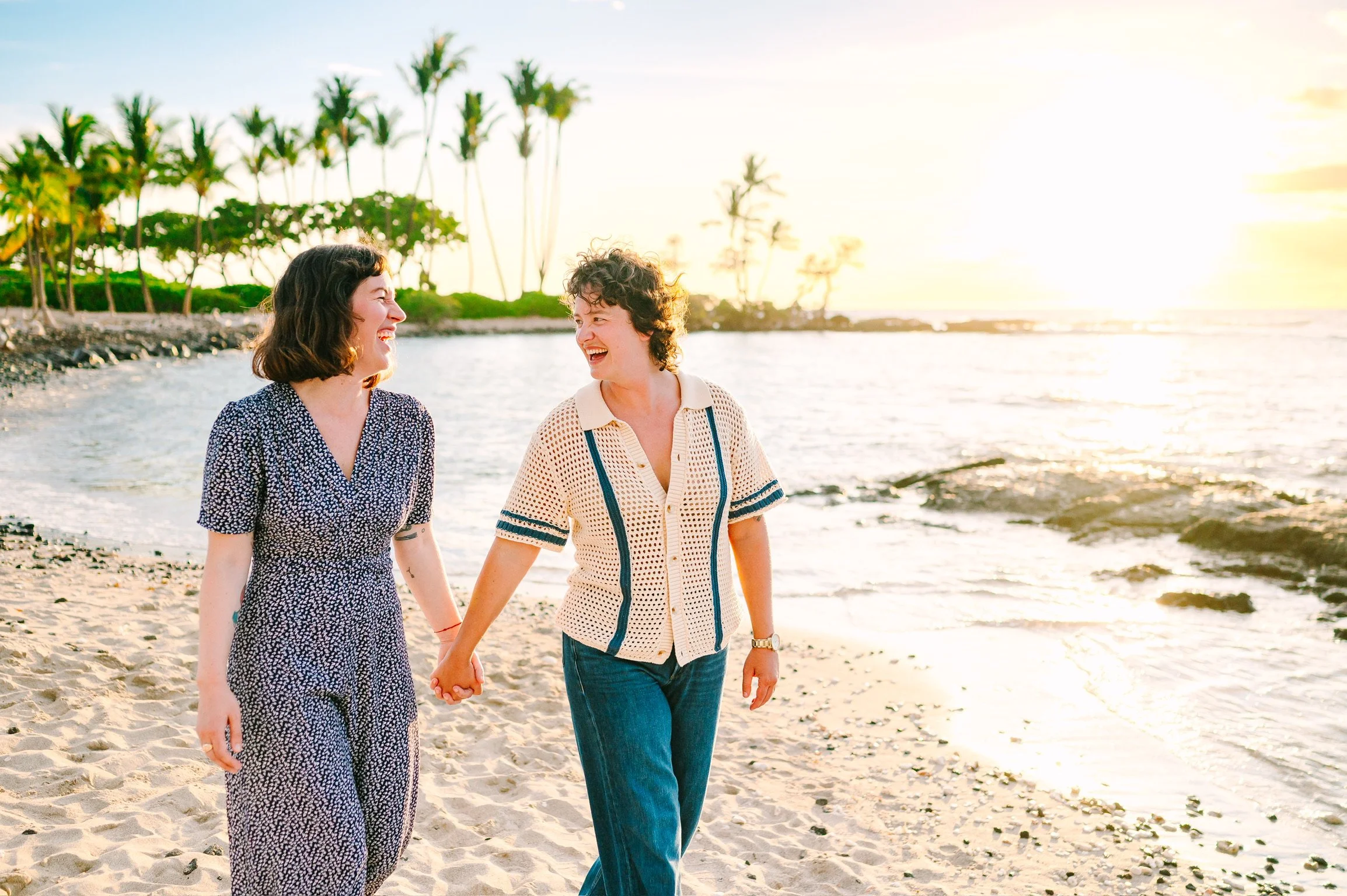 As we started walking back after popping the question in a secluded area beautifully staged by our friends, we were continuously joined by more friends along the way until we arrived at a seemingly impromptu engagement party at the other end of the beach, where a blanket printed with our faces much larger than they should ever be displayed was dropped to reveal Krisanne’s parents and aunts, who had flown in to surprise her. Having been carrying around a ring for six weeks in preparation for this moment, Krisanne proposed right back to Marie, and, spoiler alert, we both said yes.